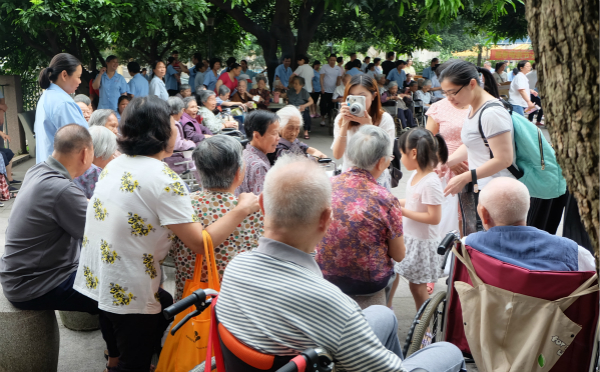 “獻(xiàn)愛心、話家?!本蠢显禾皆L活動(dòng)